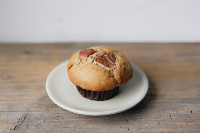 プレーン生地にたっぷりのバナナとチョコを練り込んだ、小さい子からお年寄りまで、みんな大好きなマフィン。