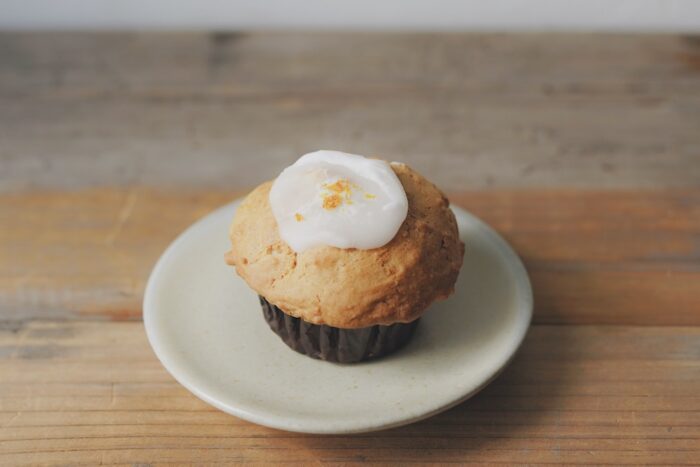 プレーン生地の中に柚子白餡を入れて焼き上げ、仕上げに柚子のアイシングと皮を乗せた和菓子のようなマフィン。ぜひ、柚子の香り高さと白餡の優しい甘さを存分にお楽しみください。